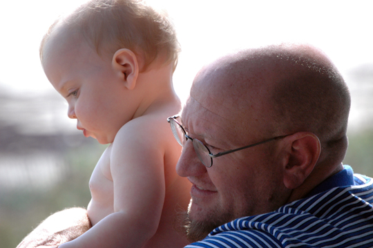 Papa, the master babysitter, watching