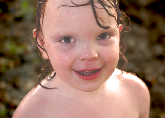 Okay, I was not quite pleased with the last beautiful photo of Lily because, by raising the brightness and contrast, I also completely blew out all detail of her hair in the sunshine. This is where we left the photo: