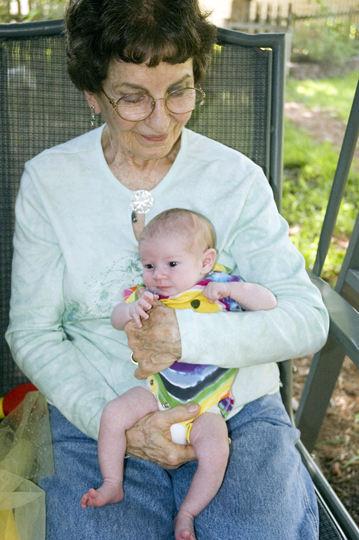 Baby Clara (two-weeks-old) with Grandma Clara (79-years-old)