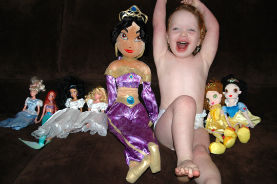 Lily with (from left to right) Cinderella, Ariel, Jasmine, Aurora, Jasmine (again),