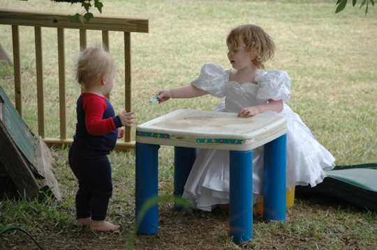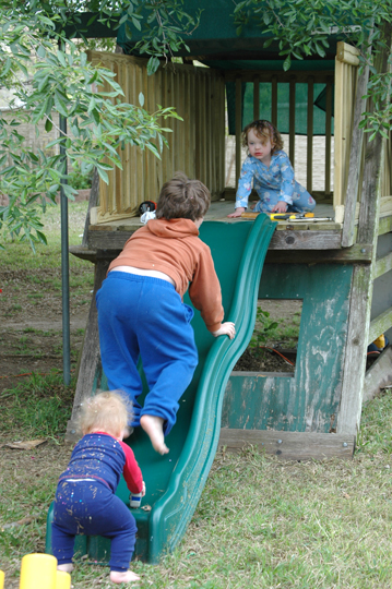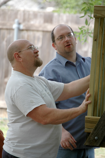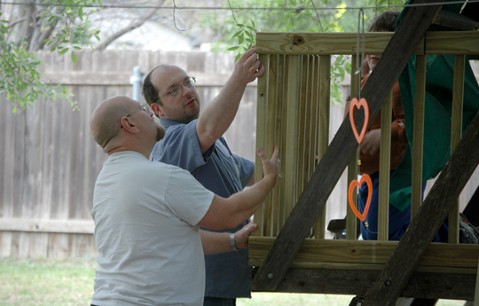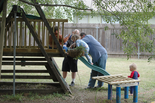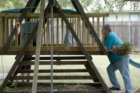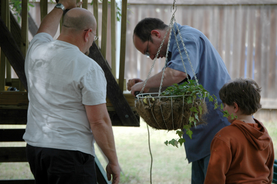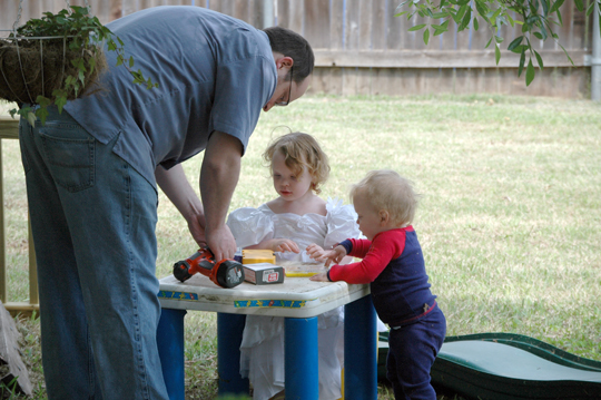 Lily, Damian and Daddy doing a little DIY in the back garden.