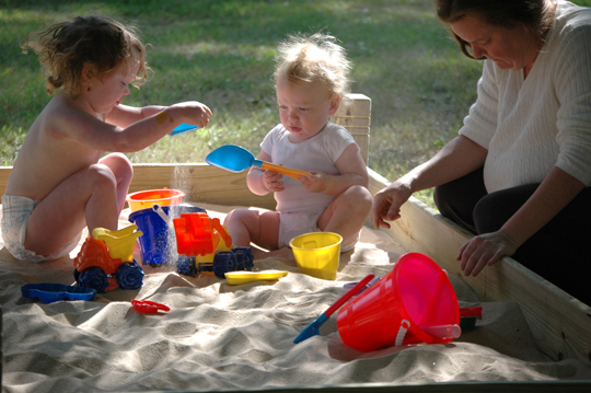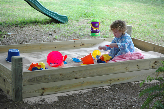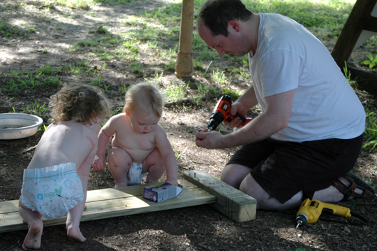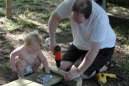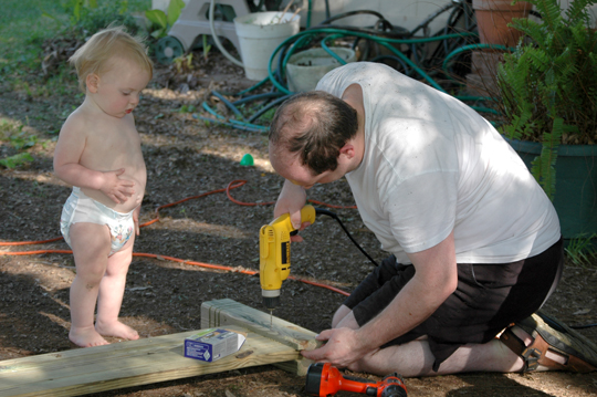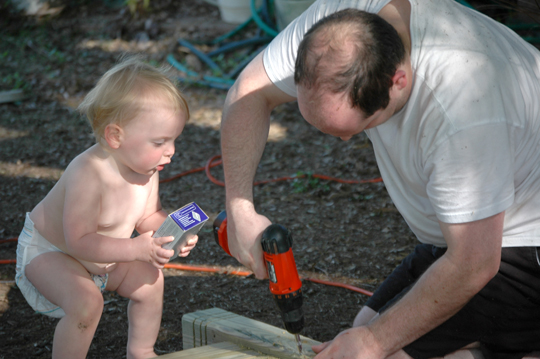 While building the sandbox, Matt had a two-foot-tall foreman watching