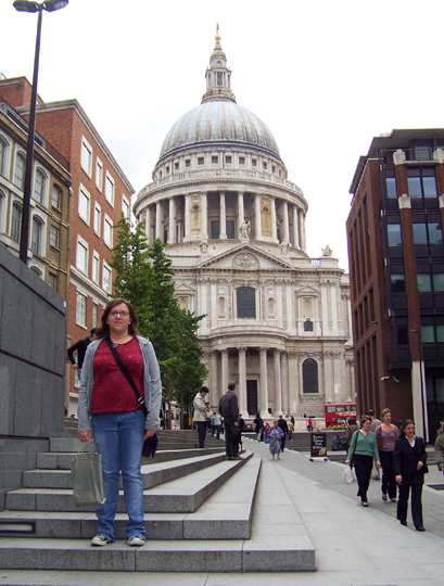 Lindsey in London with St Paul’s Cathedral in the distance.